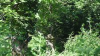 Na zahradě u domu ev. č. 11 v Kunraticích u Šluknova je pod stromy ukryt kříž.