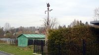 Za plotem domu čp. 1016 v Mikulášovicích stojí kříž.